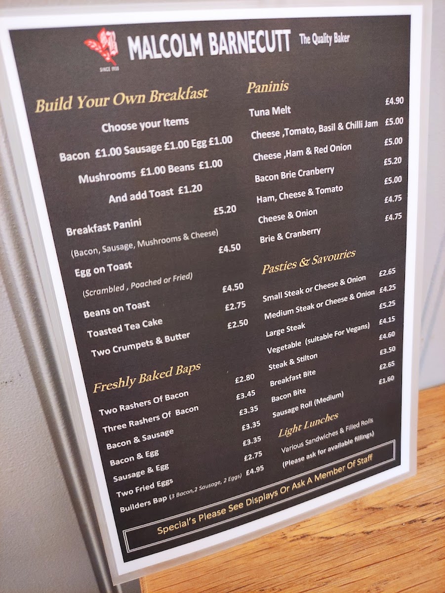 Welcome to Malcolm Barnecutt Bakery and Cafe, a charming spot located at The Quality Baker in Bodmin. This cafe boasts a delightful menu, featuring freshly baked baps that cater to every breakfast craving. Choose from classics like the Builders Bap, loaded with multiple fillings, or opt for a simple Two Fried Eggs.